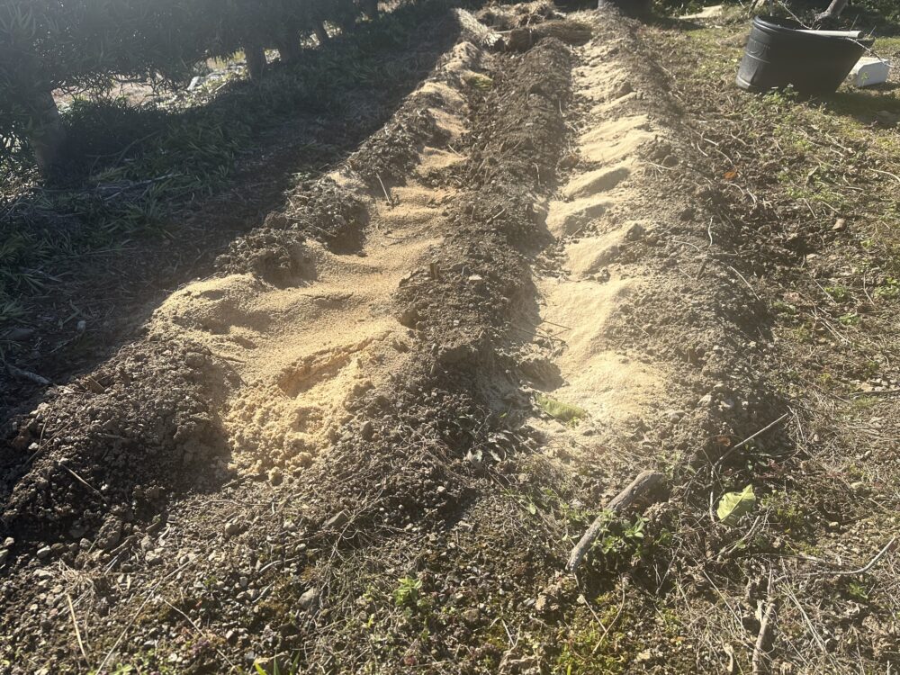 正月に、庭の畑を眺めながら