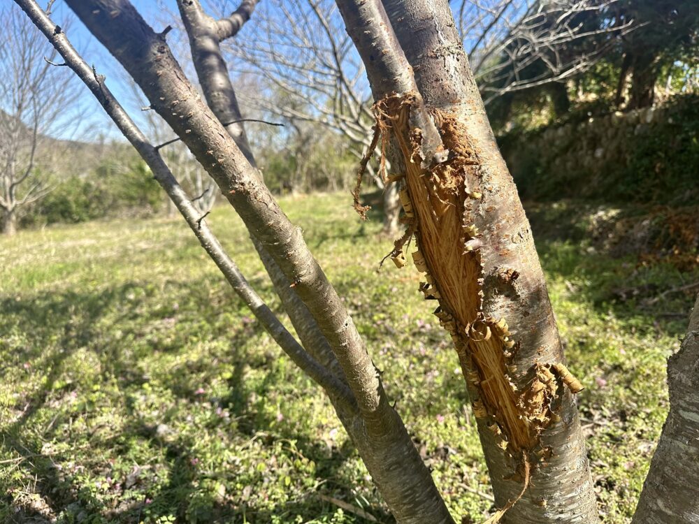 樹皮がはぎ取られて