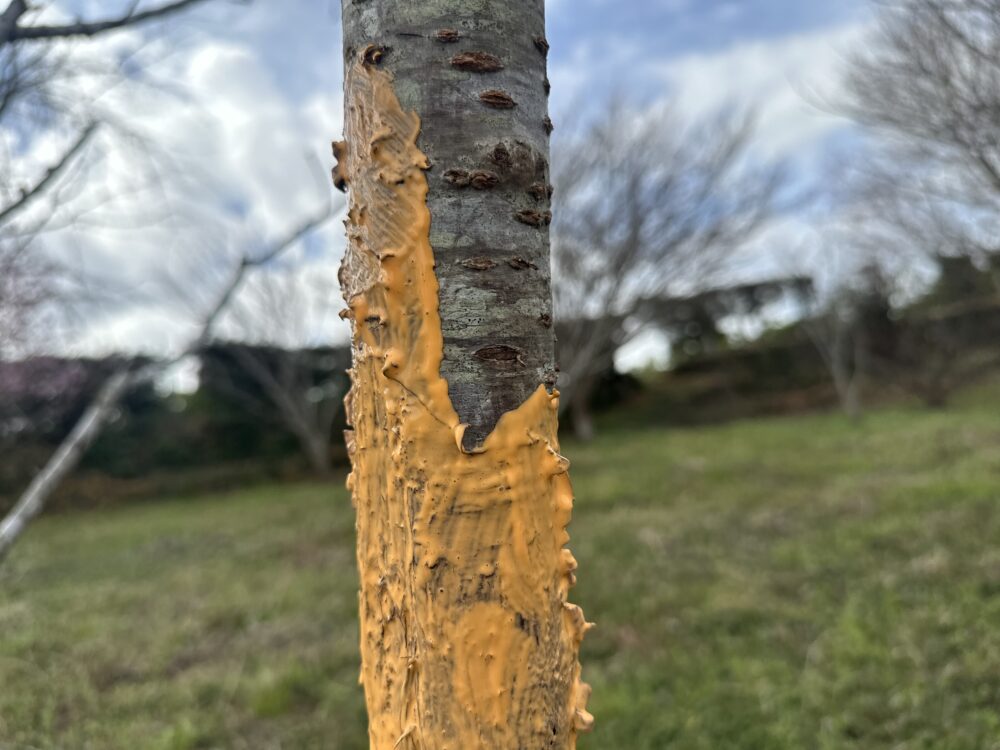 幹に保護材をまいてみます